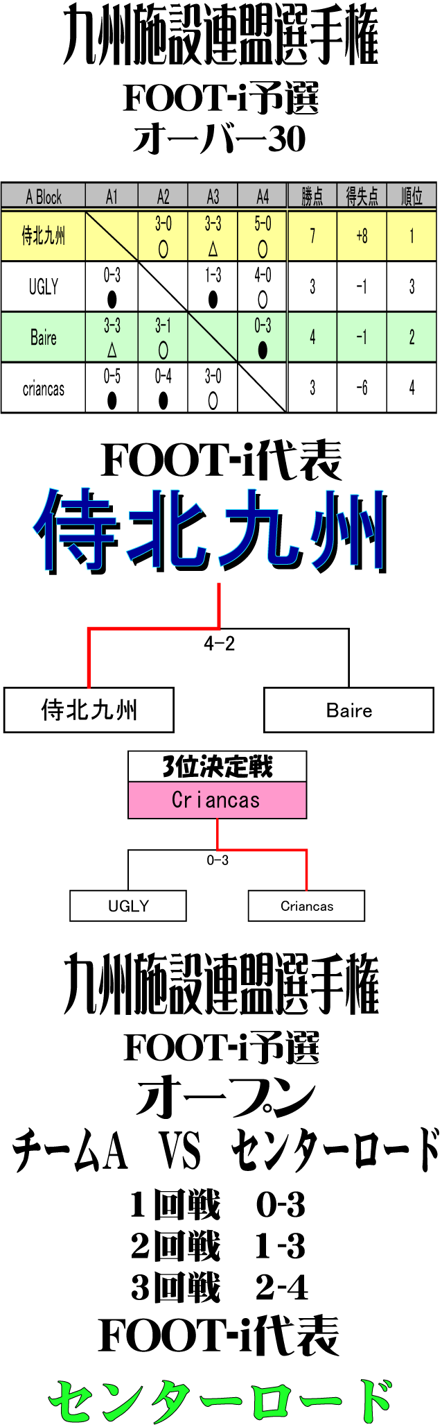 九州施設連盟選手権 FOOT-i予選 オーバー30 オープン 大会結果