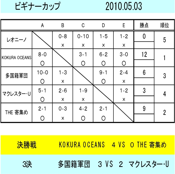 グループの結果は前FOOT−i覇者、OCEANSがダントツトップ!!