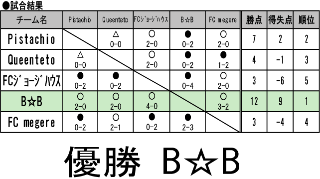 4位のジョージハウスさん 惜しい試合がいくつもありましたが、運がなかったかな。リーグ参戦しているだけのチームでした!