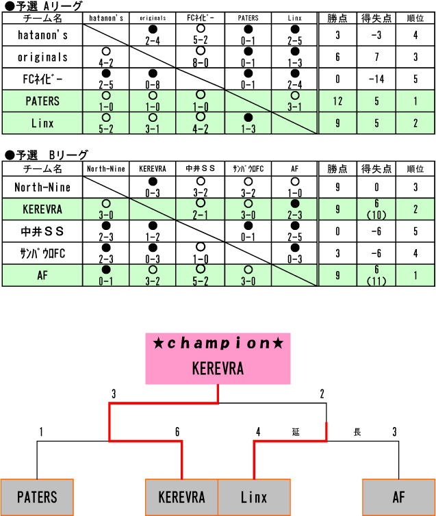 ◆第2回 炭火焼肉 karakara CUP◆ 1位 KEREVRA 2位 Linx 3位 AF 3位 PATERS