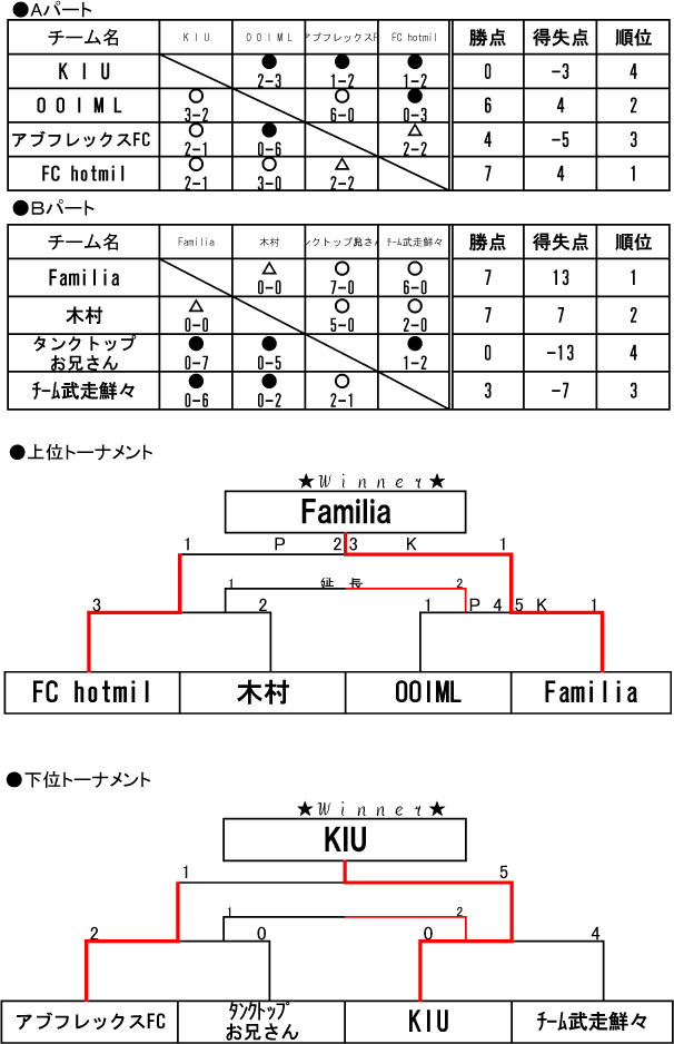 優勝したのはFamilia!組織力と安定感が他チームより若干上回っていました!
