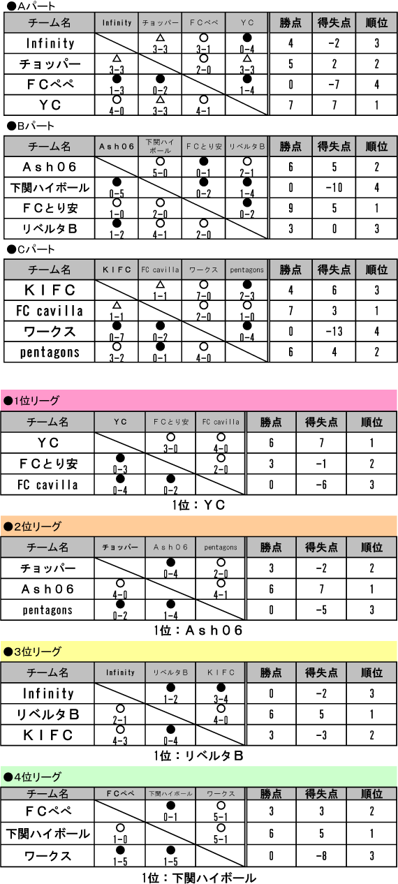 2015.11.29 〜超×2 USB CUP〜 【写真上】1位グループ優勝 YC 【写真中】3位グループ優勝 リベルタB 【写真下】4位グループ優勝 下関ハイボール