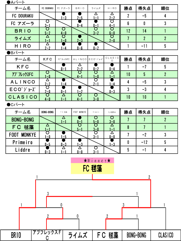 CブロックではFC毬藻とBONGBONGが上がりました。そして初参加のFOOTMONKEYさん楽しめましたか??またのご参加お待ちしております。