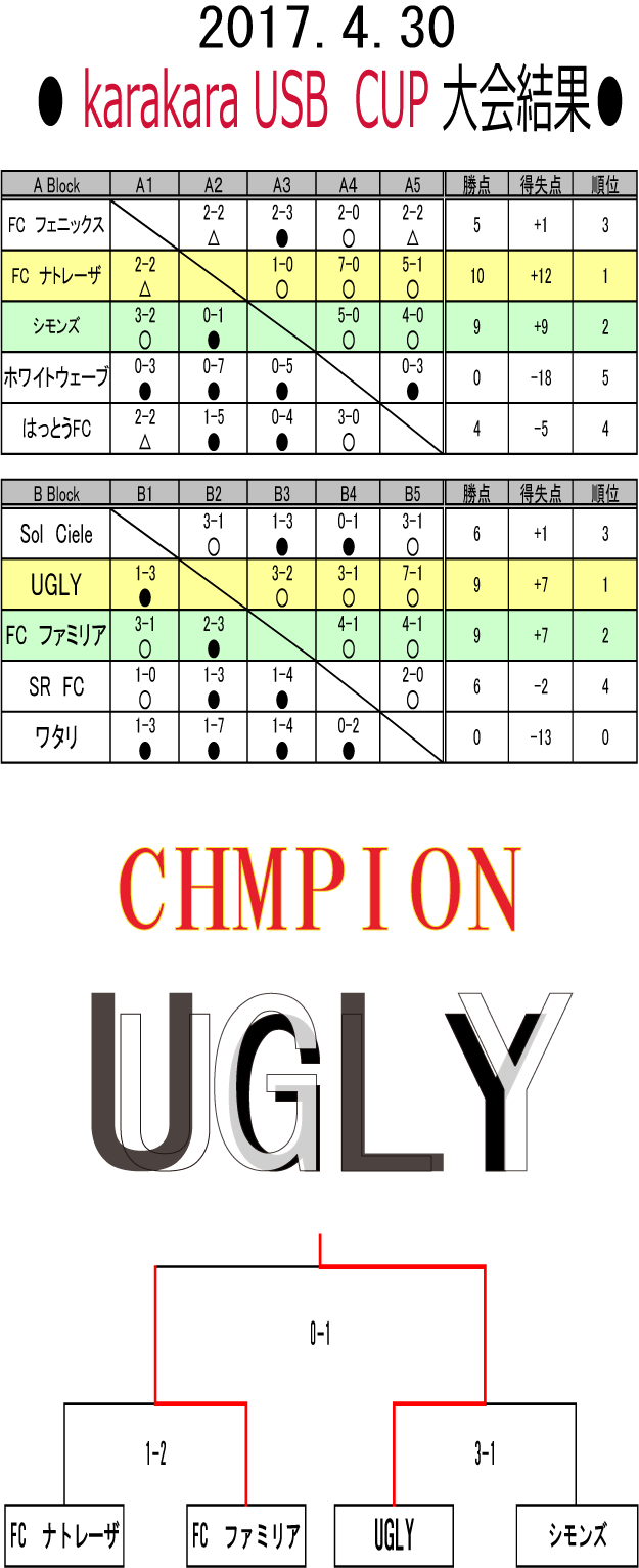 2017.4.30 karakara USB CUP ■優勝 UGLY ■準優勝 FC ファミリア