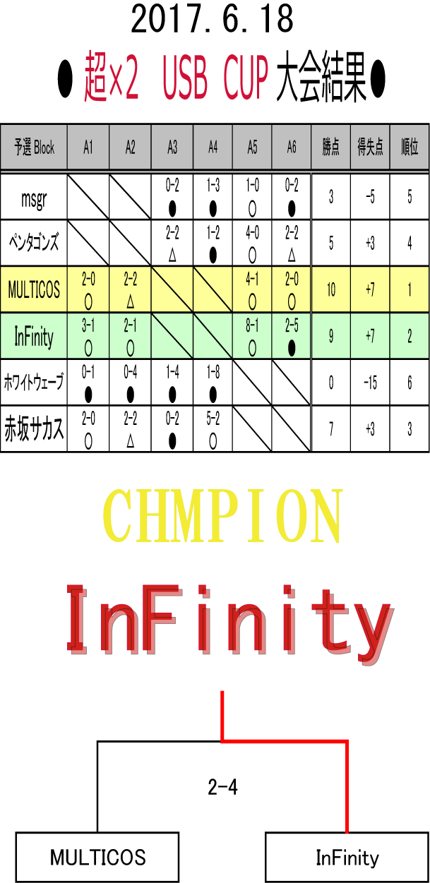 2017.6.18 超×2 USB CUP ■優勝 InFinity ■準優勝 MULTICOS 暑い中ご参加ありがとうございました!