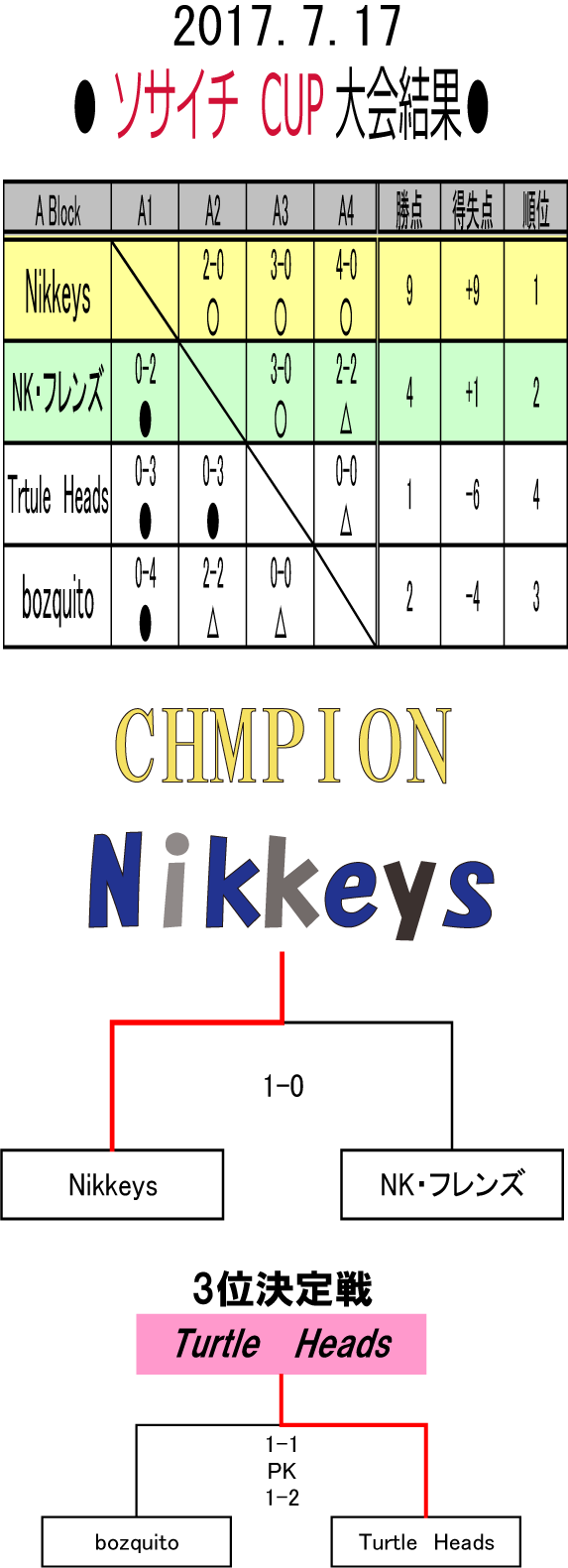 2017.7.17 ソサイチ CUP ■優勝 Nikkeys ■準優勝 NK・フレンズ 暑い中たくさんのご参加ありがとうございました!