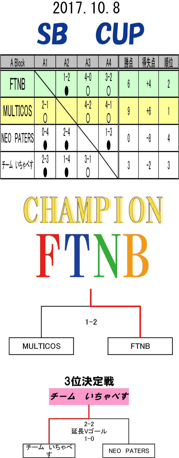 2017.10.8 SB CUP ■優勝 FTNB ■準優勝 MULTICOS ご参加ありがとうございました!