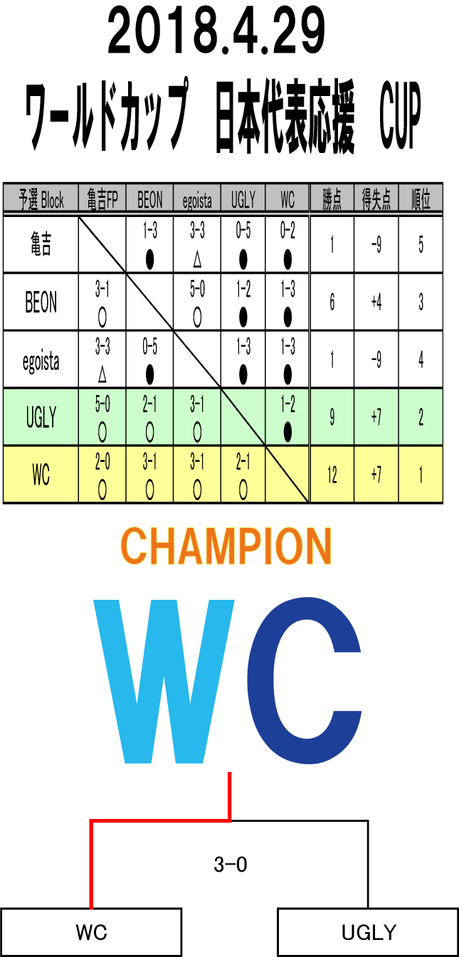 ワールドカップ 日本代表応援 CUP 大会結果 ■写真上 優勝 WC ■写真中 準優勝 UGLY 暑い中ご参加ありがとうございました!