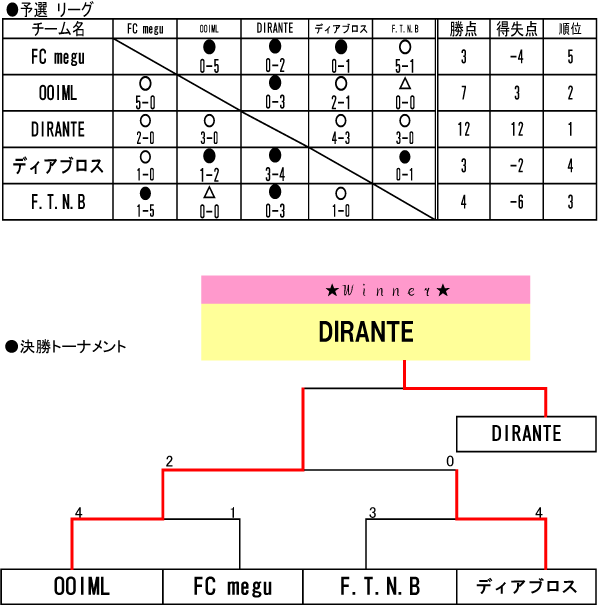 以上5チームでの大会形式となりました。